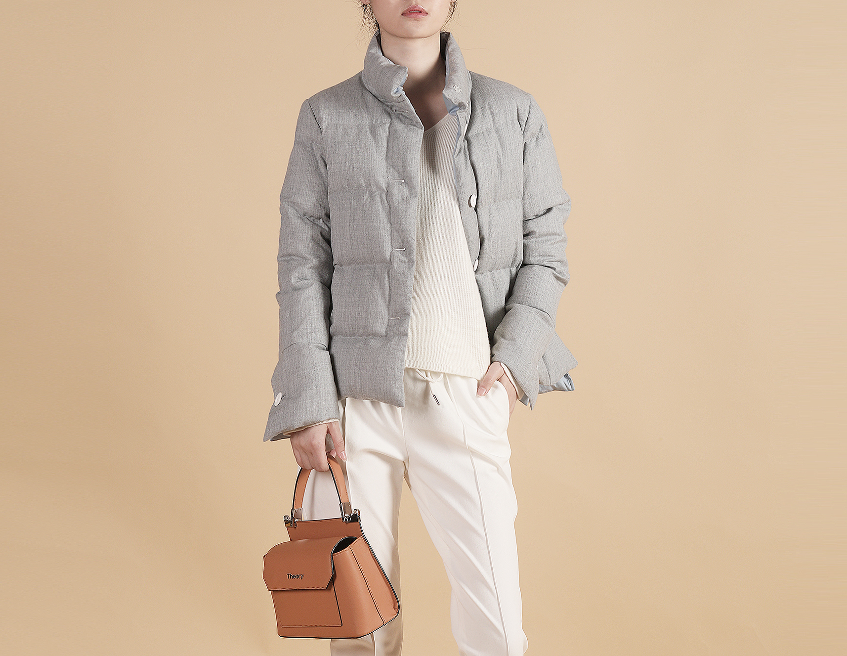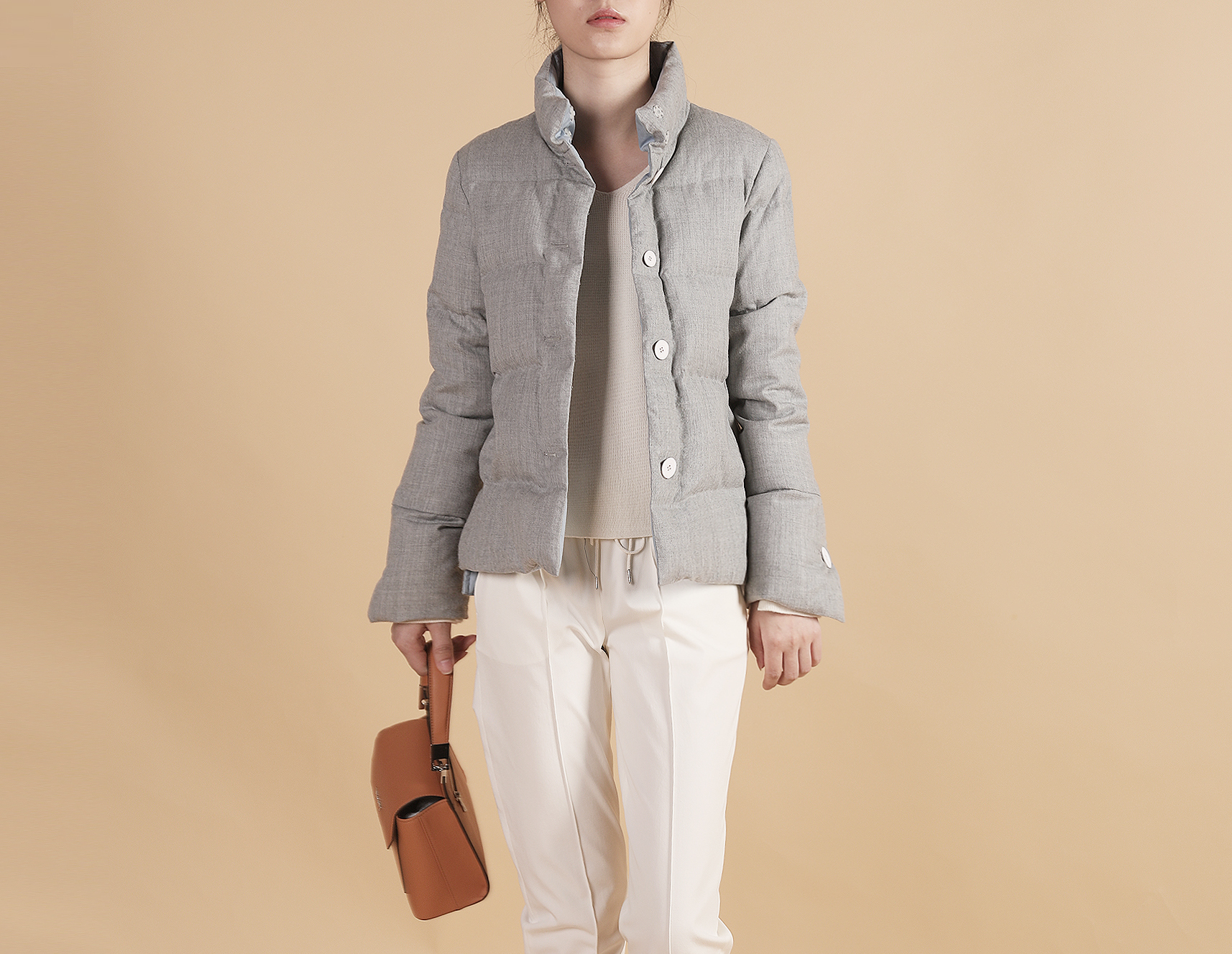 通过上短下长的视觉效果,拉长了腿部线条,所以希尔瑞短款羽绒服无疑是一款显高神器。两粒扣给整体提亮的效果,羊绒的用料给希尔瑞羽绒服多一层温暖。