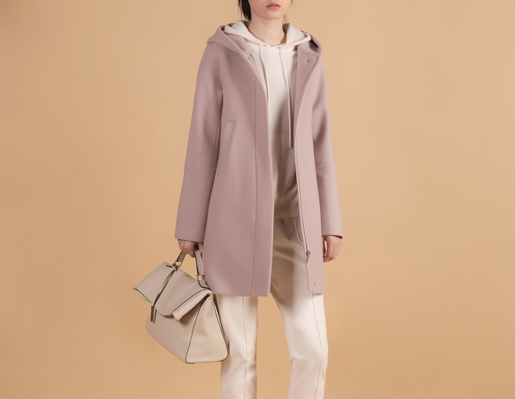 采防泼水面料, 连帽设计,美观实用,隐形拉链让服装干净简单又不缺发时尚感。