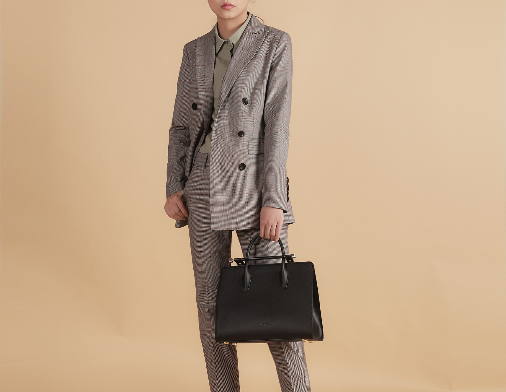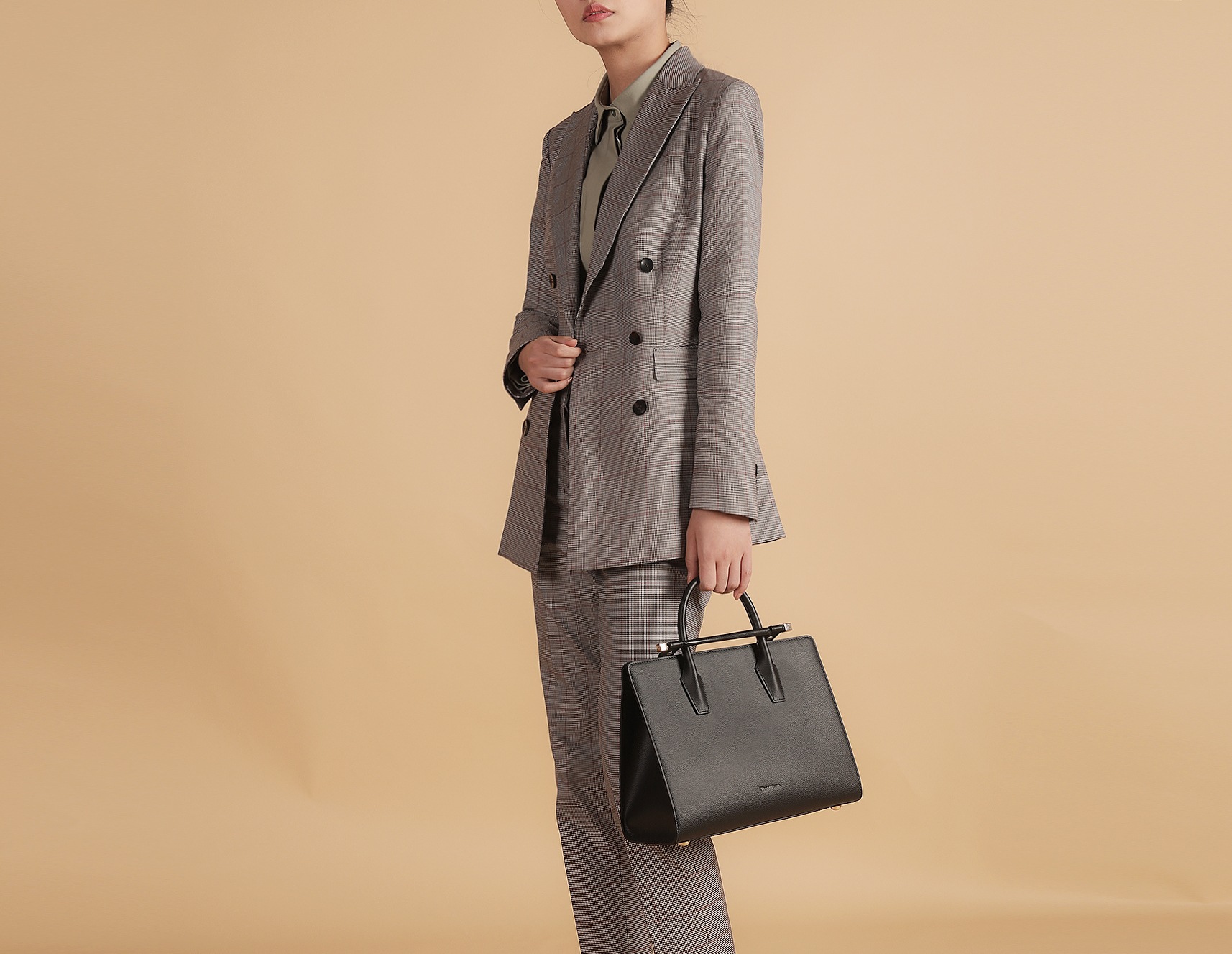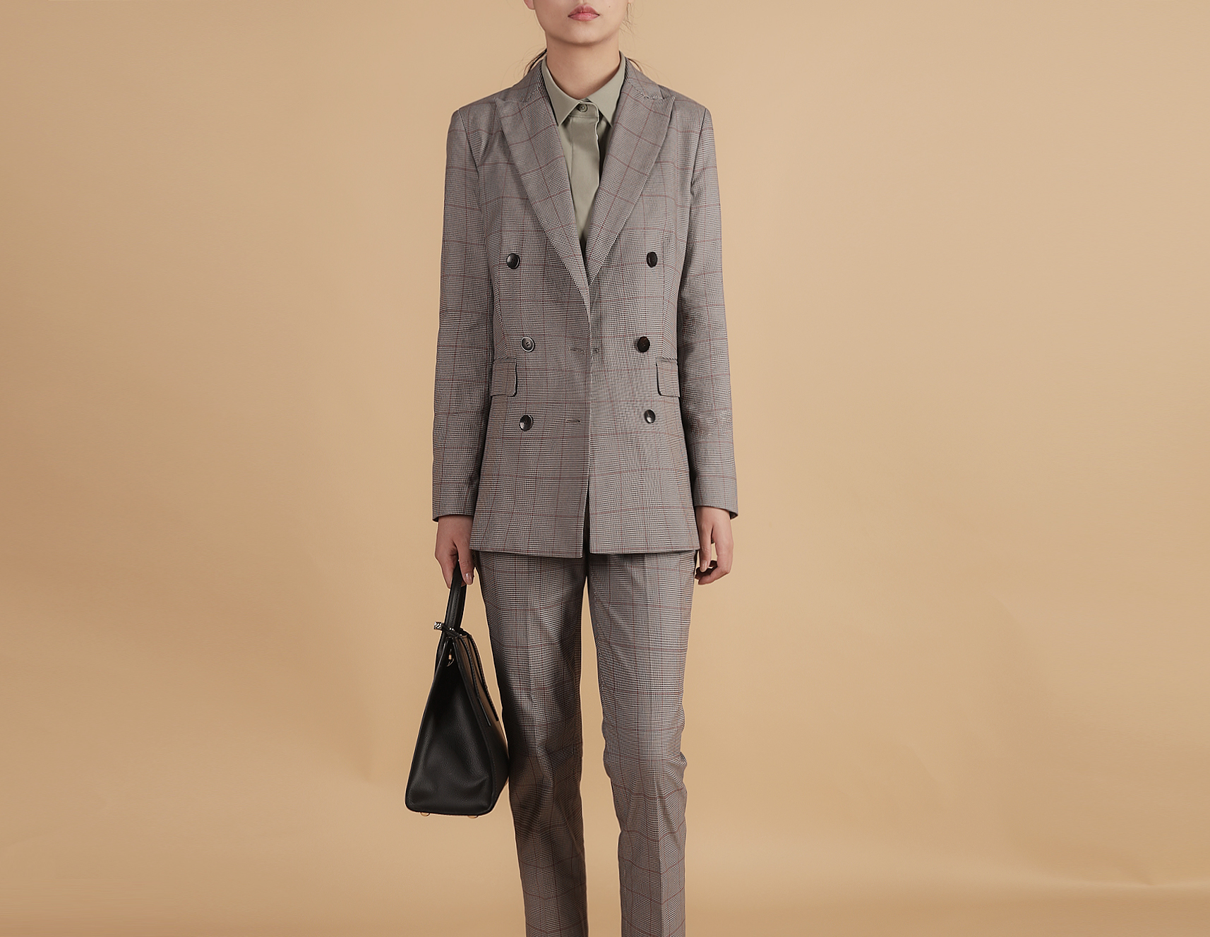 咖色的色调,沉着低调且不张扬,整体看起来硬朗时髦,格子的希尔瑞西装外套可搭配宽腰带具有时髦感,在希尔瑞套装裤之余可搭配其他牛仔裤可通勤可日常,很舒服又不会太过随意。​