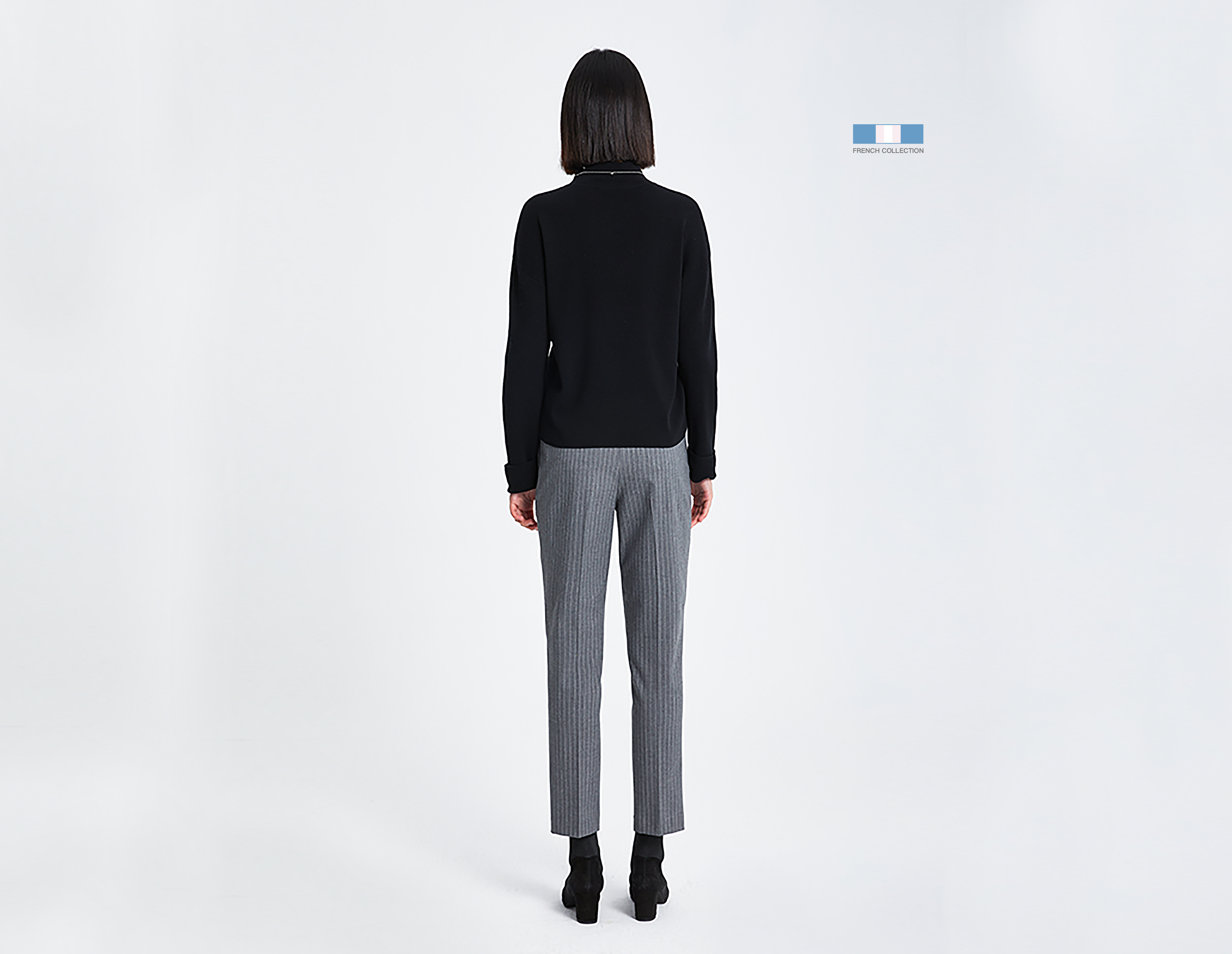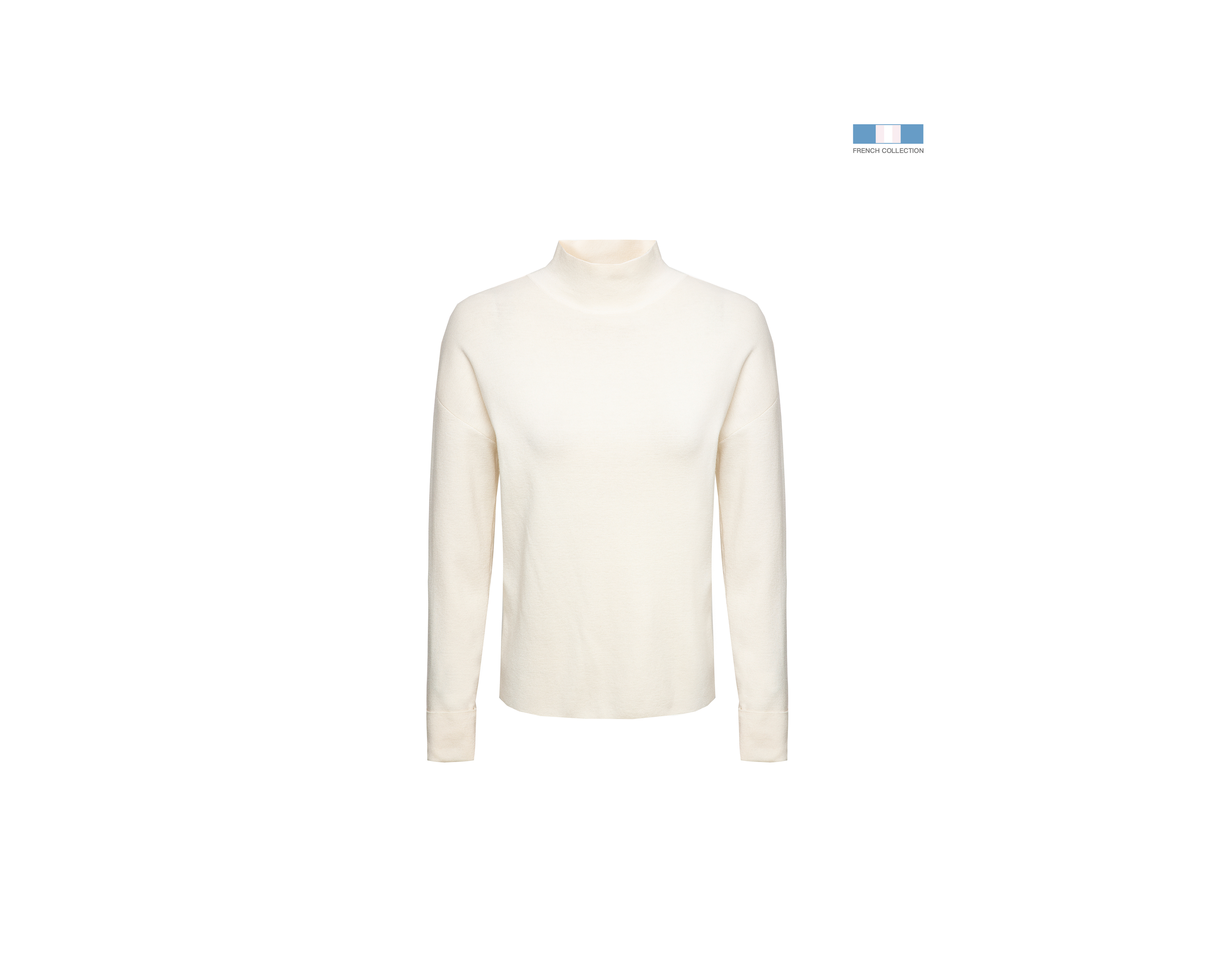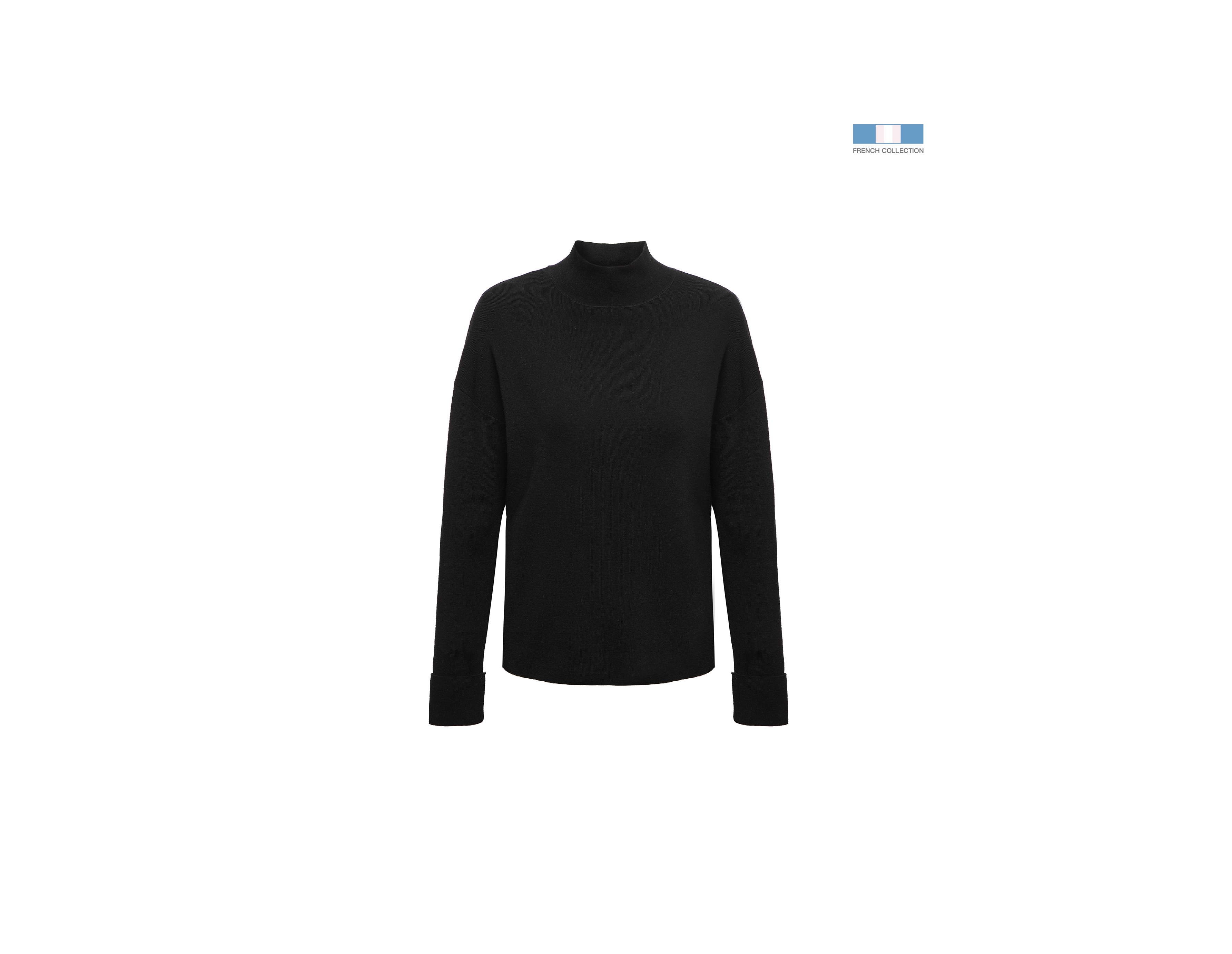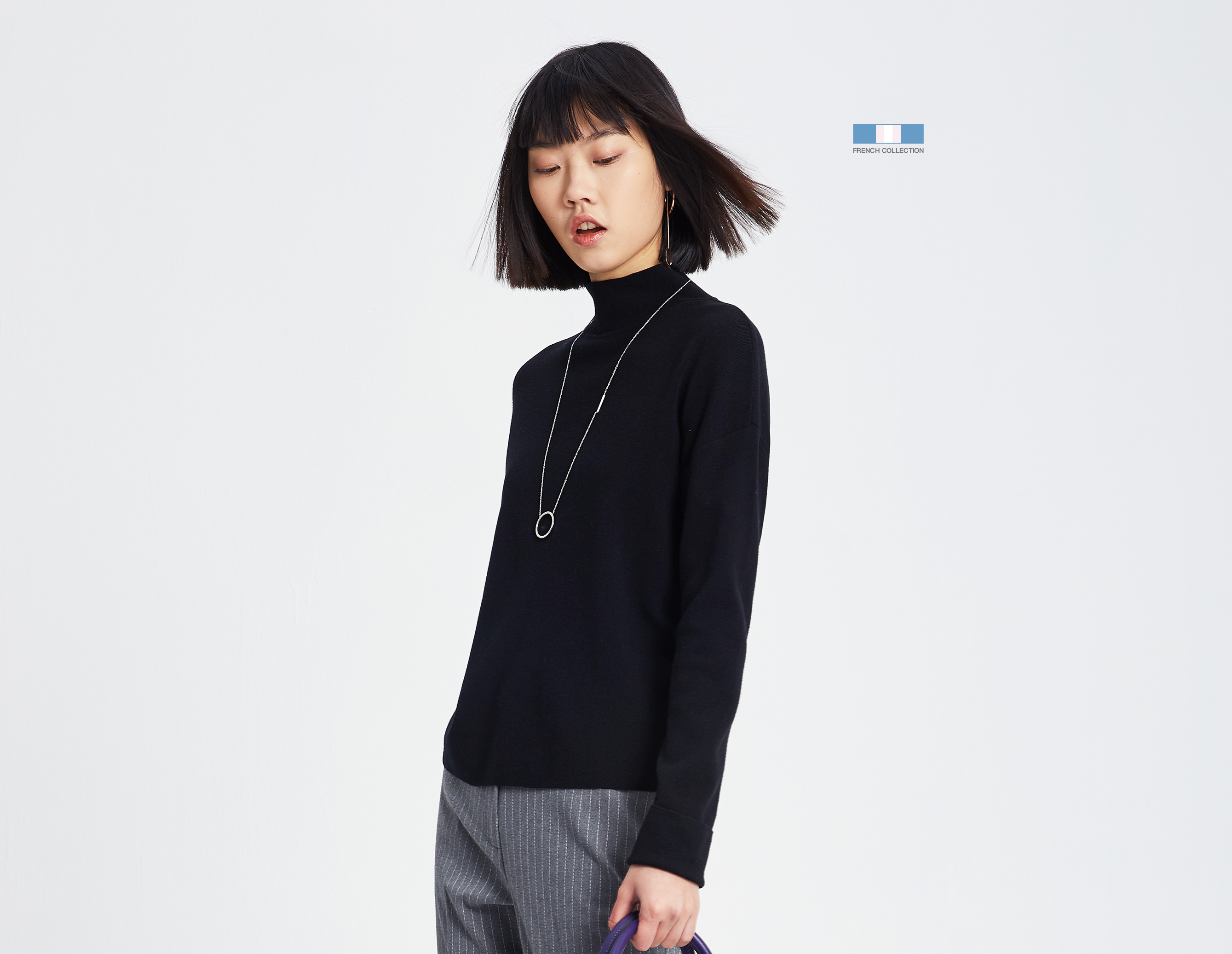 精纺羊毛半高领毛衣,袖口双翻设计,微阔型