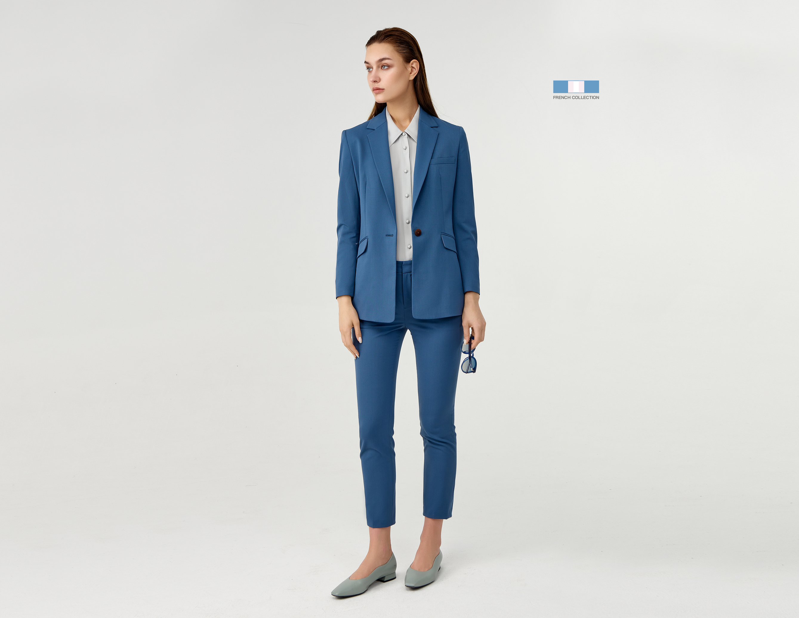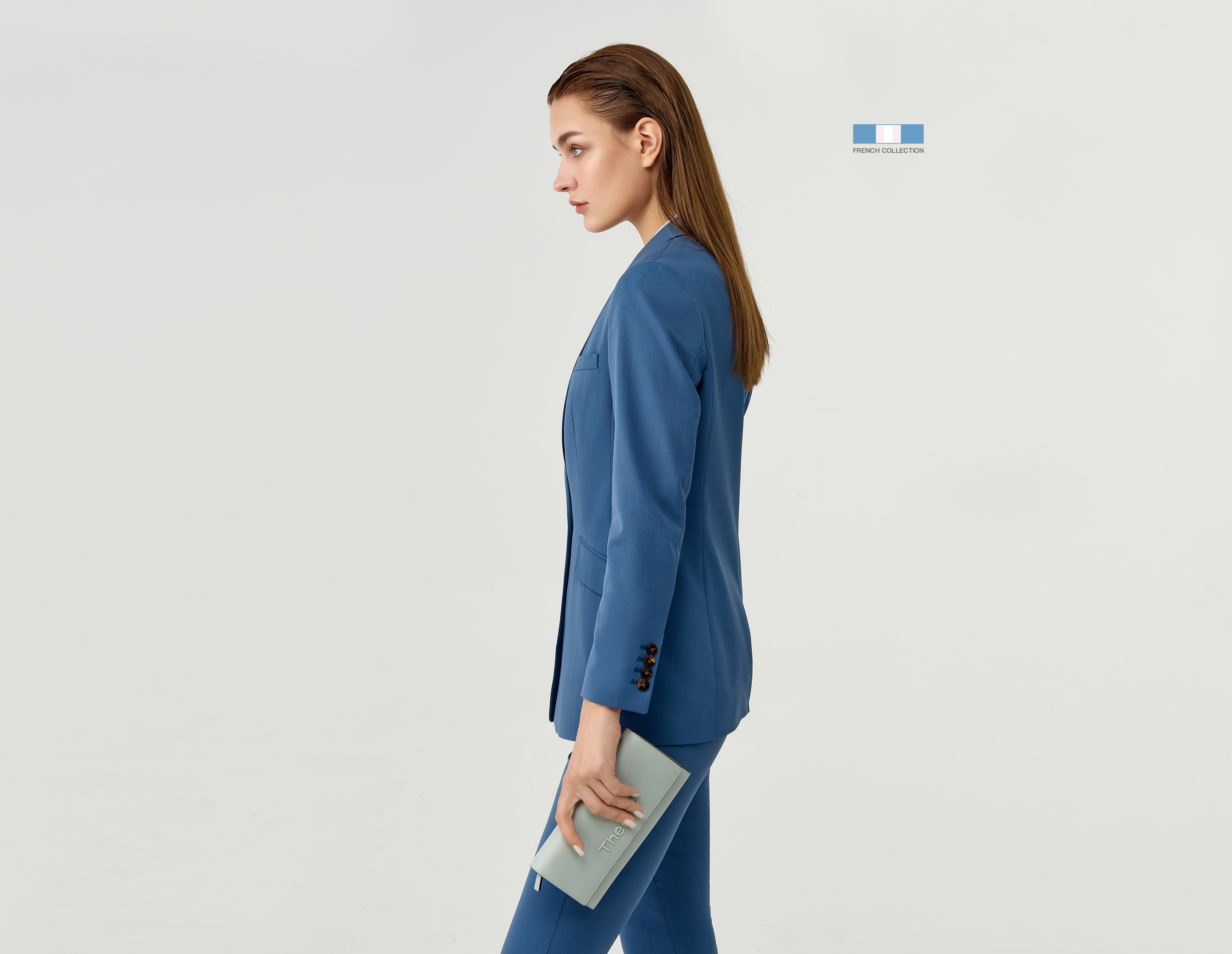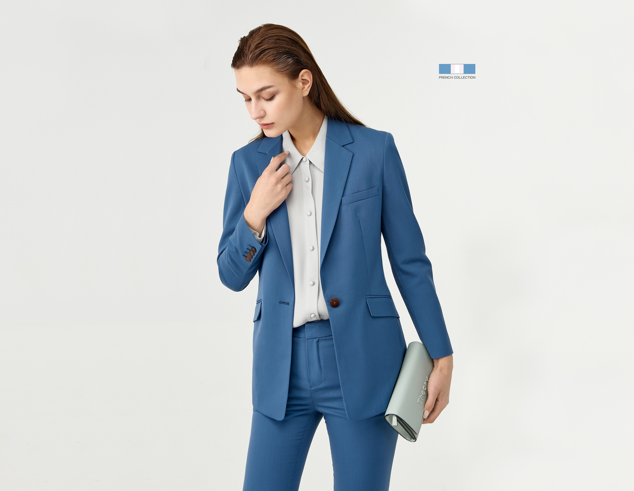 悠适阔型直身版微妙结合经典与时尚,面料具有骨感与挺括度,易于打理。舒适自在的穿着体验,不设限搭配形式,细致考究的平驳西装领,线条流畅,平服挺括,升级整体品质感。