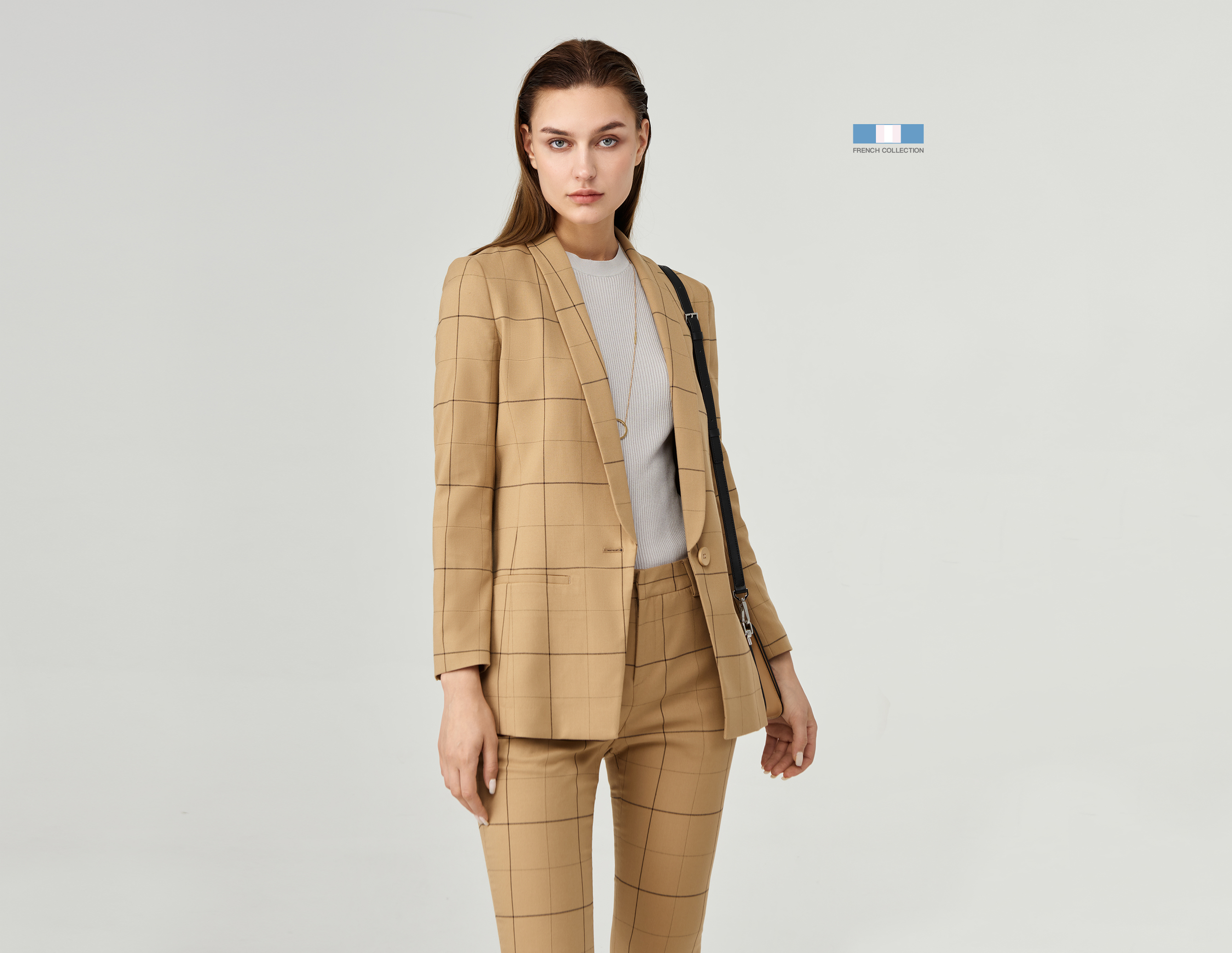 精致感的微收腰造型凸显女性身形,结合流畅的领型线条完美的修饰脸型,下摆斜切裁剪强塑时髦版型,大方格型气场十足,凸显女性优雅利落的魅力。
