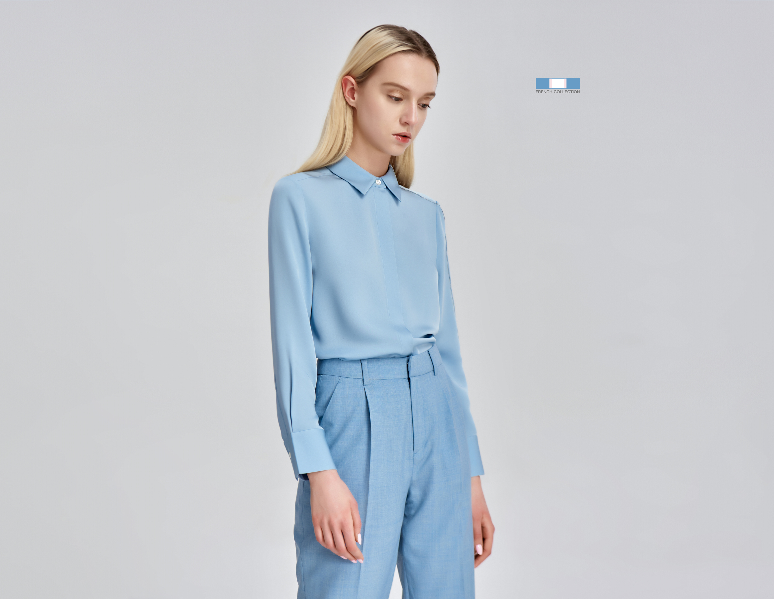 线条完整连贯从领部到袖口。