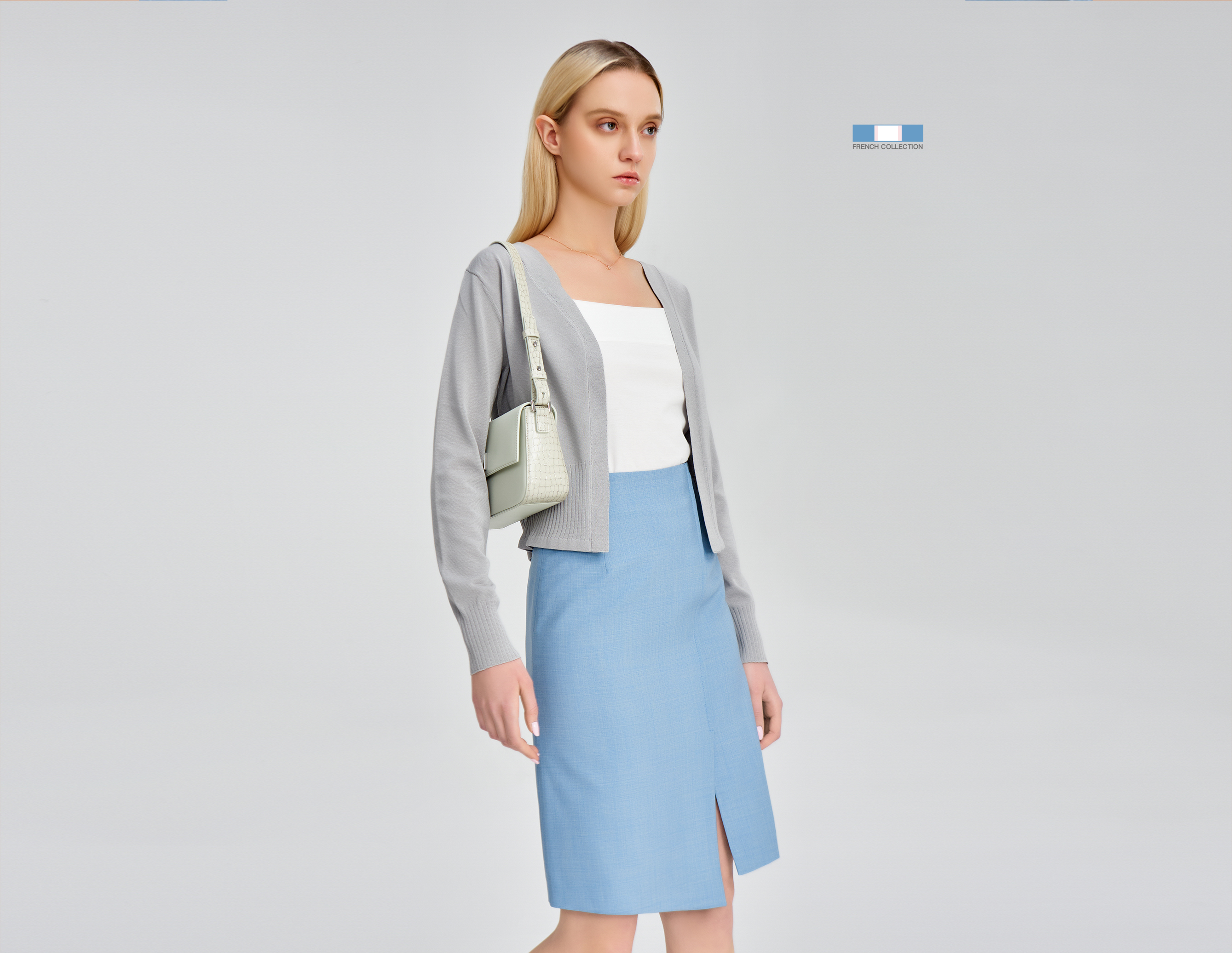 短款开衫款式,门襟设计灵感来源于大自然中代表清雅的竹叶,领部造型做曲线设计可以很好的修饰颈部!