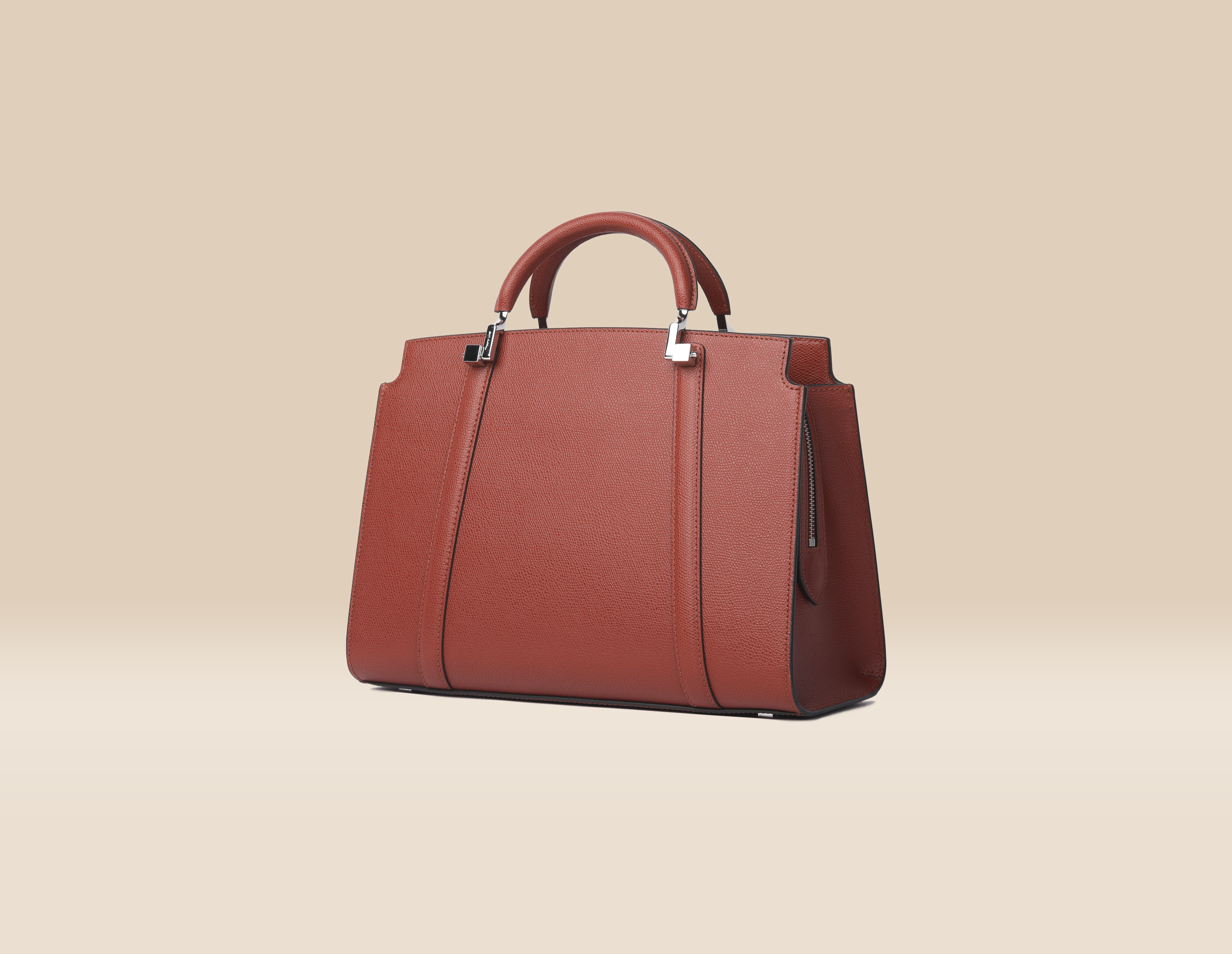 通勤款定型包,此款为大包,与LWBA31007小款为大小组合,手把五金特别订制,加强包包牢固性。精致缝线及特别订作的五金件增加包包承受力,细致平滑边油,恰到好处的把手让包包手提起来饱满舒适。